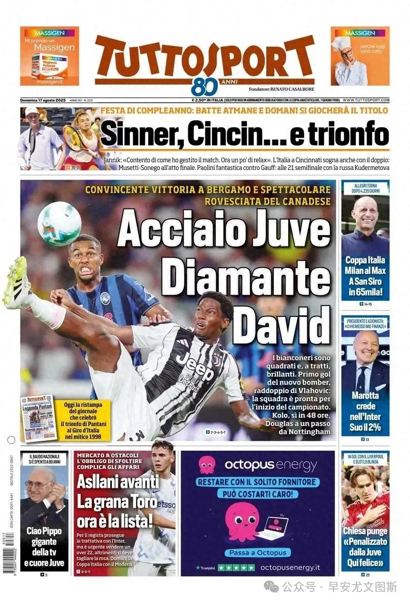 1, Thép Juventus, Diamond David: Một chiến thắng thuyết phục ở Bergamo, một cái móc vàng đảo ngược tuyệt vời cho người Canada. Quân đoàn Zebra trông vững chắc và đôi khi rực rỡ. Tiền đạo mới đã ghi bàn thắng đầu tiên của anh ấy, sau đó Vlahovic mở rộng điểm số. Đội đã sẵn sàng cho mùa giải mới. Kloe, trong vòng 48 giờ. Douglas chỉ cách Rừng Nottingham một bước.