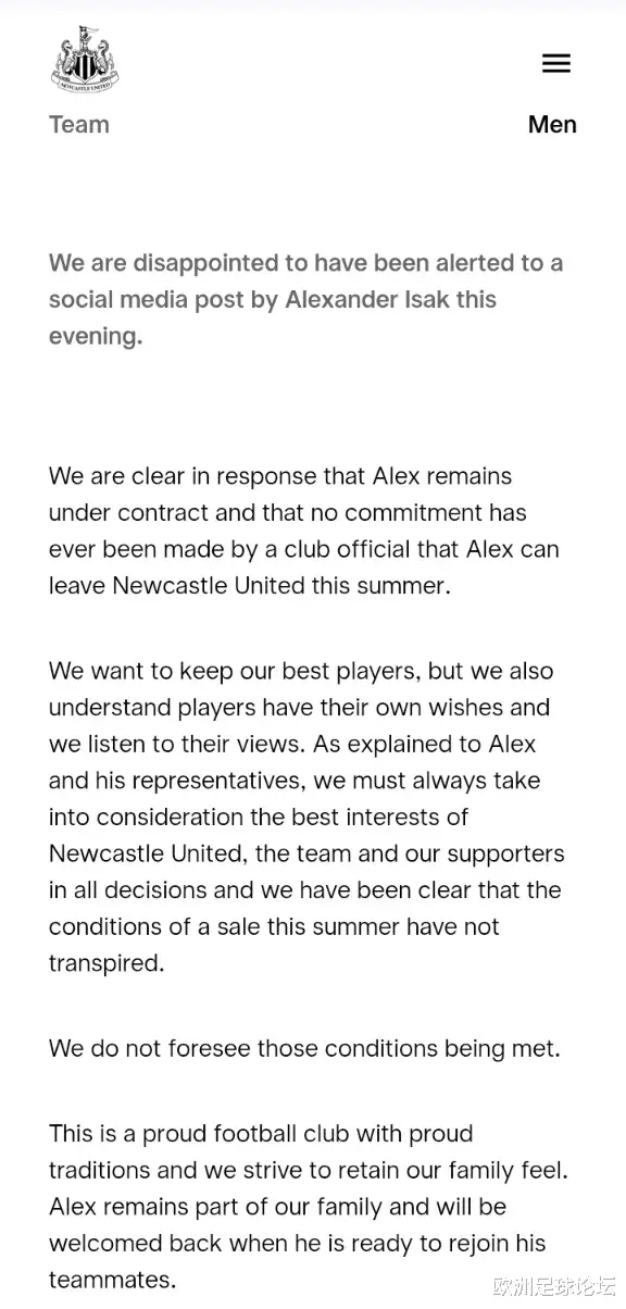 Phản hồi chính thức của Newcastle đối với tuyên bố của Isaac vừa đưa ra một tuyên bố công khai. Cụ thể như sau ↓