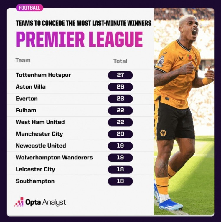 Tin tức ngày 27 tháng 8 trong lịch sử Premier League, một số đội thường trở thành bảng nền đã bị đánh bại trong phút cuối. Opta bao gồm 10 đội hàng đầu với những con số chiến thắng nhất trong phút cuối của lịch sử Premier League, với Tottenham xếp hạng 27 lần đầu tiên.