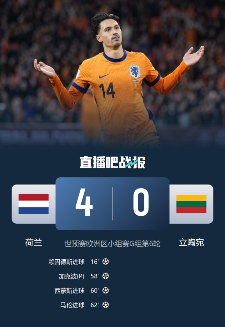 Ở lượt thứ 6 bảng G vòng bảng châu Âu của Vòng loại World Cup, Hà Lan 4-0 Lithuania với Reinders và Gakpo chuyền bóng.