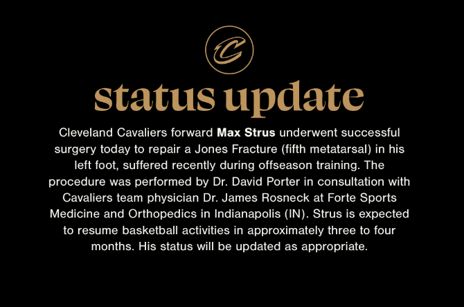 Vào ngày 27 tháng 8, Cleveland Cavaliers bị chấn thương. Cavaliers chính thức tuyên bố rằng người bảo vệ đội Marx Struz đã trải qua phẫu thuật sửa chữa thành công do gãy chân trái của Jones (xương metatarsal thứ năm) trong quá trình huấn luyện ngoài luồng gần đây. Anh ấy dự kiến sẽ tiếp tục các hoạt động bóng rổ trong 3 đến 4 tháng và tình trạng của anh ấy sẽ được cập nhật kịp thời.